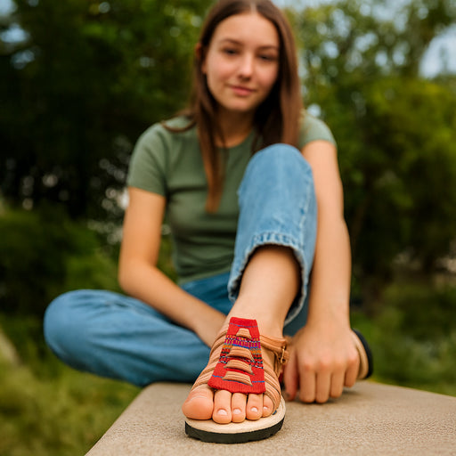 Ver todos los detallesEstas sandalias bohemias, hechas a mano, fusionan la tradición artesanal guatemalteca con un estilo moderno. Cuentan con correas de cuero natural y...