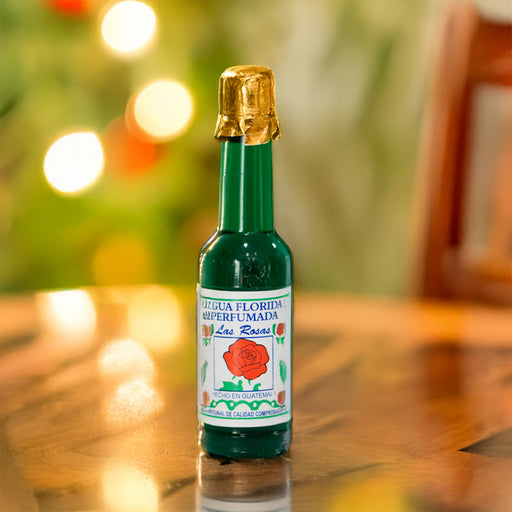 Agua perfumada tradicional guatemalteca con esencia floral.