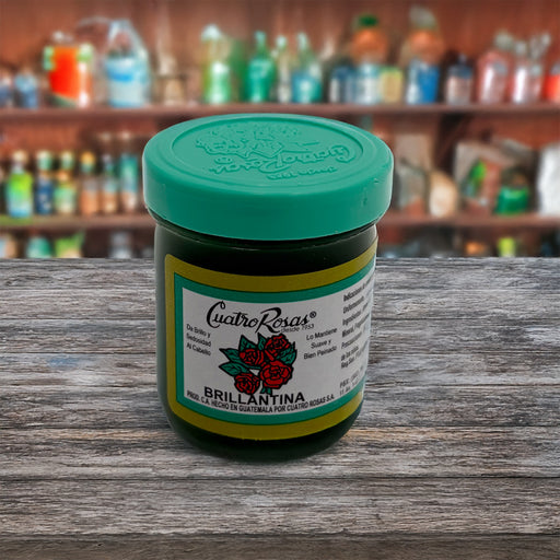 Ver todos los detallesBrillantina Cuatro Rosas – Brillo y Sedosidad para el Cabello (Tarro Verde Oscuro)